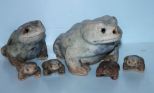 Group of Peters Pottery Frogs, one 4" h., others 1/2" h. Group of Peters Pottery Frogs, one 4" h., others 1/2" h.