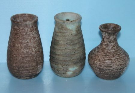 Three Pottery Small Vases; 4" h., 4 1/2" h. Three Pottery Small Vases; 4" h., 4 1/2" h.