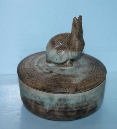 Covered Pottery Jar with Rabbit; 5" dia., 5" h. Covered Pottery Jar with Rabbit; 5" dia., 5" h.