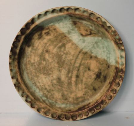 Large Round Peters Pottery Tray; 13" dia. Large Round Peters Pottery Tray; 13" dia.