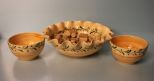 816 Large Gail Pittman Rattled Edge Bowl and Two Gail Pittman Bowls