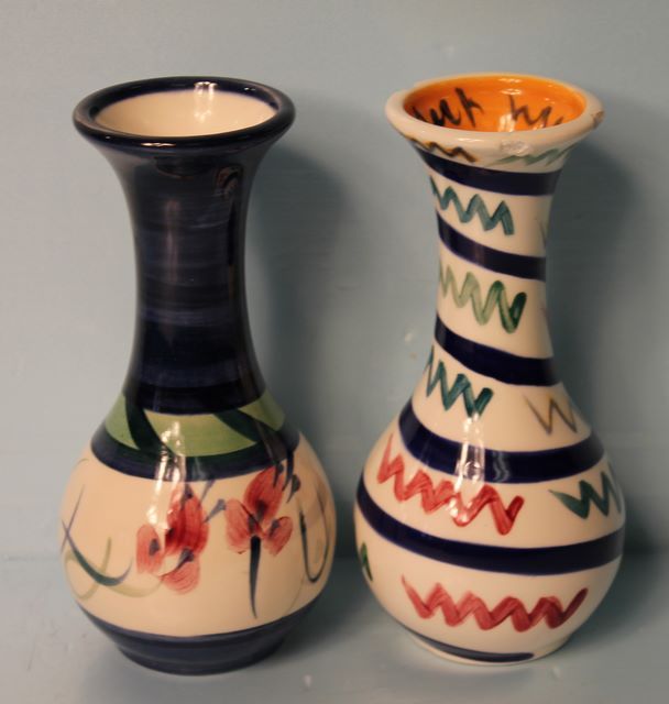 Pair Gail Pittman Vases (chip in lip of one); 6 1/2" h. Pair Gail Pittman Vases (chip in lip of one); 6 1/2" h.