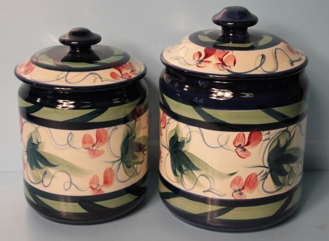 Two Gail Pittman Pottery Canisters; 9" to 10 1/2" h. Two Gail Pittman Pottery Canisters; 9" to 10 1/2" h.
