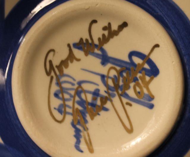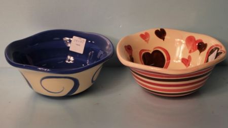 Two Gail Pittman Bowls and Porcelain Knob; 6 1/2" dia. Two Gail Pittman Bowls and Porcelain Knob; 6 1/2" dia.