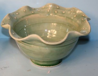 Pottery Bowl, Raffled Edge; 6 1/2" dia., 3 7/8" h. Pottery Bowl, Raffled Edge; 6 1/2" dia., 3 7/8" h.