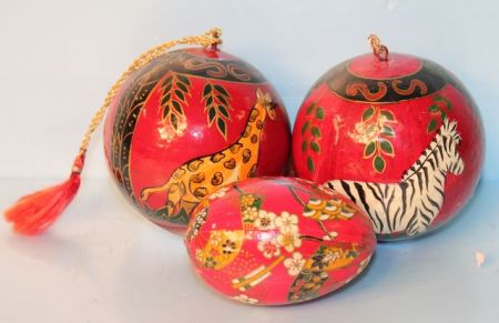 Two Painted Paper Balls; Painted Paper Egg; 3" dia. Two Painted Paper Balls; Painted Paper Egg; 3" dia.