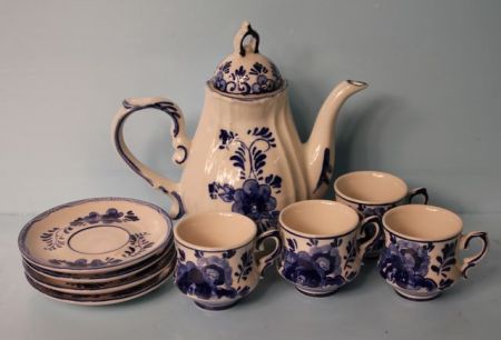 847 Delft Blue Pot and Four Cups with Saucers