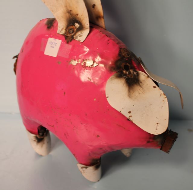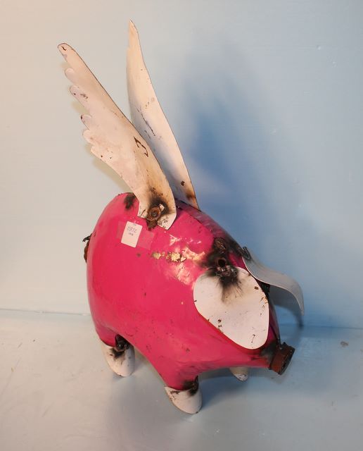 Tin Pig with Wings; 17" h., 16" w. Tin Pig with Wings; 17" h., 16" w.