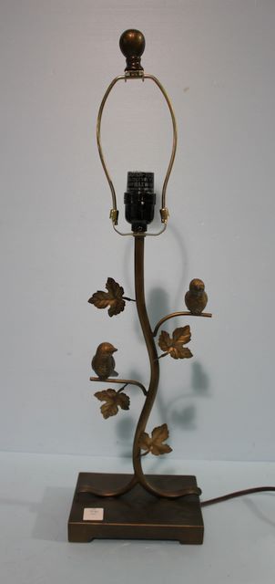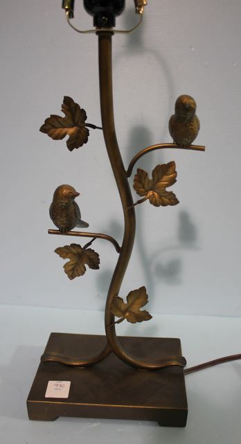 Tree Shape gold Lamp with Two Birds Nesting; 23" h., including shade Tree Shape gold Lamp with Two Birds Nesting; 23" h., including shade