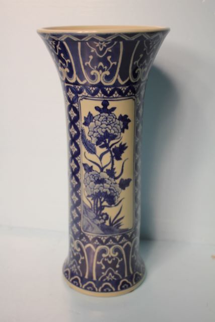 Blue and White Flower Vase; 14" h., 6 1/2" dia. Blue and White Flower Vase; 14" h., 6 1/2" dia.