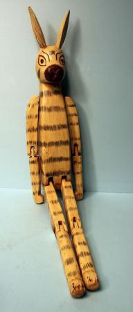 Large Wooden Rabbit with hinged arms and legs; 33" h. Large Wooden Rabbit with hinged arms and legs; 33" h.