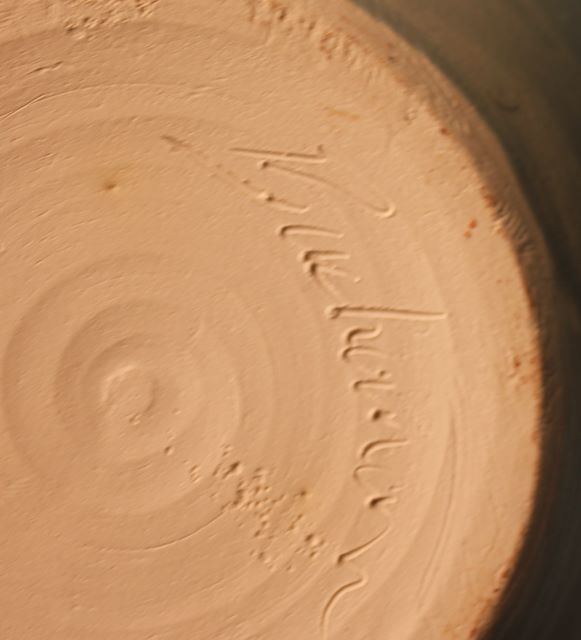 Mint Green Pottery Vase, signed Buchanan; 9' h. Mint Green Pottery Vase, signed Buchanan; 9' h.