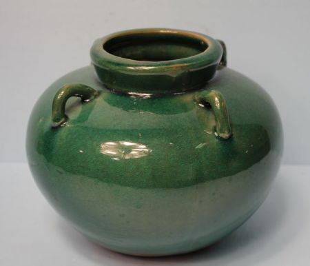 Small Four Handled Green Urn; 7 1/2" h., 7" dia. Small Four Handled Green Urn; 7 1/2" h., 7" dia.