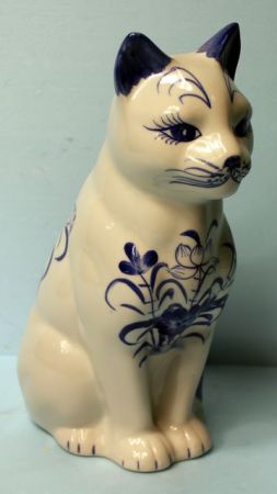 Blue and White Porcelain Cat; 10" h. Blue and White Porcelain Cat; 10" h.