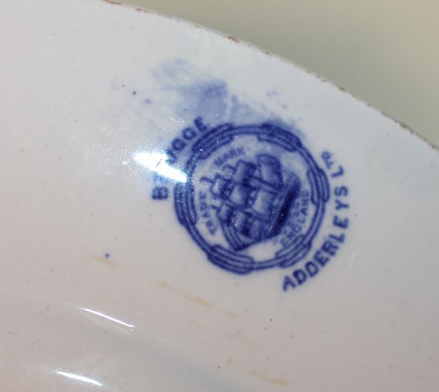 Blue and White Plate Stamped Brugge Adderley's; 10" dia. Blue and White Plate Stamped Brugge Adderley's; 10" dia.