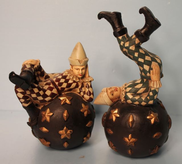 Pair of Harlequins Accent Pieces; 8" h., 6" h. Pair of Harlequins Accent Pieces; 8" h., 6" h.