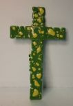 Hand Painted Glass Cross, signed and dated; 5 1/2" w., 9" h. Hand Painted Glass Cross, signed and dated; 5 1/2" w., 9" h.
