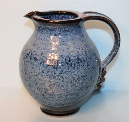 Tone on Tone Blue Pottery Pitcher, signed T. Peterbaugh Gill; 7 1/2" h. Tone on Tone Blue Pottery Pitcher, signed T. Peterbaugh Gill; 7 1/2" h.