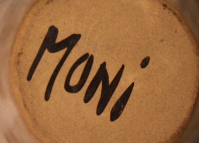 Crimped Pottery Bowl, signed Moni; 6" dia. Crimped Pottery Bowl, signed Moni; 6" dia.