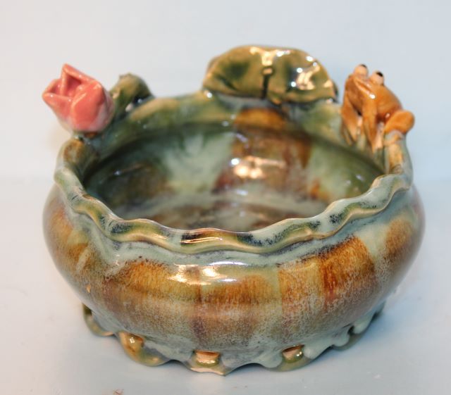 Small Glazed Pottery Bowl with Frog; 4" dia. Small Glazed Pottery Bowl with Frog; 4" dia.
