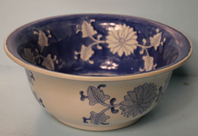 Blue and White Porcelain Bowl; 12" dia. Blue and White Porcelain Bowl; 12" dia.