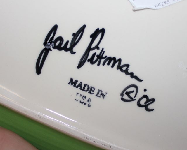 Seven Gail Pittman Dishes with Letter "M"; plate 6" dia., two triangle plates 10" w., four 8" square plates Seven Gail Pittman Dishes with Letter "M"; plate 6" dia., two triangle plates 10" w., four 8" square plates