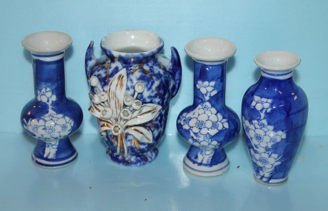 Four Small Blue and White Porcelain Vases; 4" h. Four Small Blue and White Porcelain Vases; 4" h.