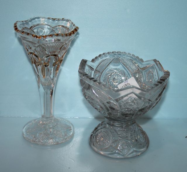 1159 Two Small Pieces Pressed Glass; Bud Vase and Punch Bowl