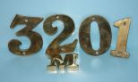 Four Brass Numbers 4 1/2" h. and Brass Letter "M" Four Brass Numbers 4 1/2" h. and Brass Letter "M"
