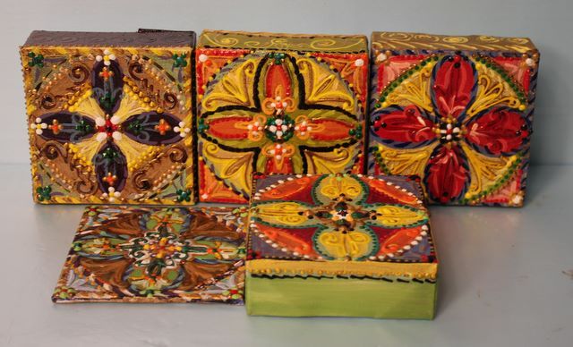 Lot of Five Oils of Crosses; 4" square Lot of Five Oils of Crosses; 4" square
