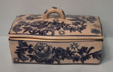 Rectangular Blue and White Covered Dish; 7 1/2" w., 4 1/2" Rectangular Blue and White Covered Dish; 7 1/2" w., 4 1/2"