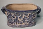 Rectangular Blue and White Two Handled Center Bowl; 12 1/2" w., 5 1/2" d. Rectangular Blue and White Two Handled Center Bowl; 12 1/2" w., 5 1/2" d.