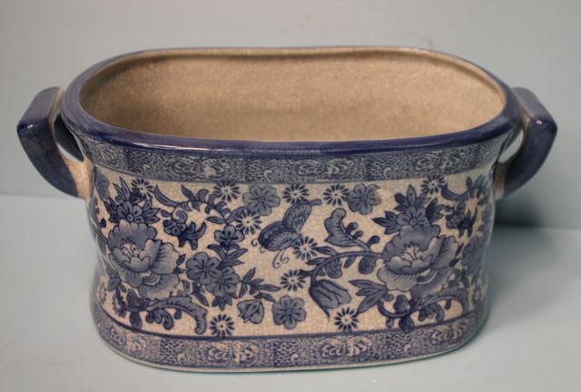 1213 Rectangular Blue and White Two Handled Center Bowl