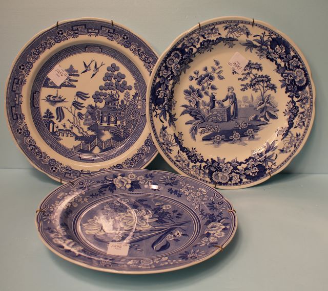 Three Spode Blue Room Collection Plates with Wall Hangers; 10 1/2" dia. Three Spode Blue Room Collection Plates with Wall Hangers; 10 1/2" dia.