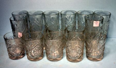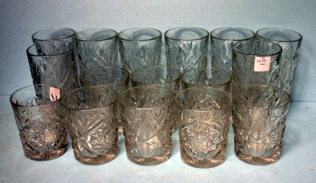 Sixteen Press Glass Glasses; eight 4 1/2" h., eight 6 1/4" h. Sixteen Press Glass Glasses; eight 4 1/2" h., eight 6 1/4" h.