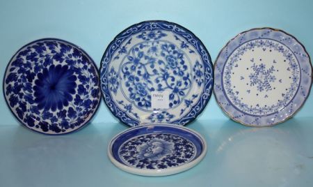 Four Small Blue and White Porcelain Dishes; 4" dia. Four Small Blue and White Porcelain Dishes; 4" dia.