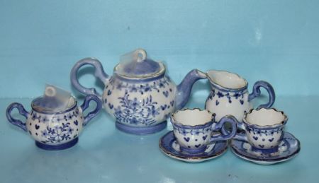 1301 Seven Piece Blue and White Miniature Porcelain Tea Set