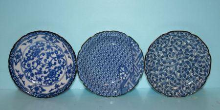 Three Small Blue and White Porcelain Dishes; 5" dia. Three Small Blue and White Porcelain Dishes; 5" dia.