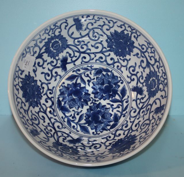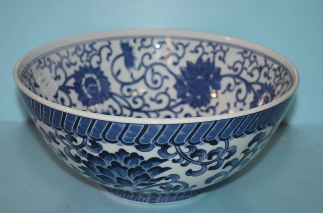 Blue and White Porcelain Bowl; 10" dia. Blue and White Porcelain Bowl; 10" dia.