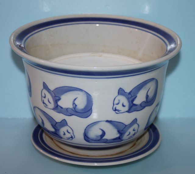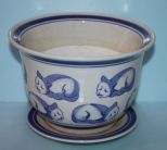 Blue and White Porcelain Flower Pot with Undertray; 8" dia. Blue and White Porcelain Flower Pot with Undertray; 8" dia.