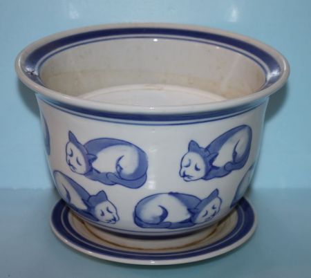 1317 Blue and White Porcelain Flower Pot with Undertray