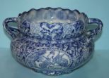Blue and White Two Handle Porcelain Flower Pot; 9 1/2" dia. Blue and White Two Handle Porcelain Flower Pot; 9 1/2" dia.