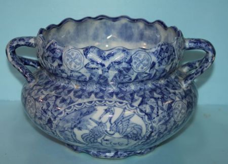 1319 Blue and White Two Handle Porcelain Flower Pot