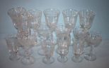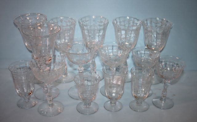 1321 Fifteen Pieces Etched Glass Glasses in Various Sizes