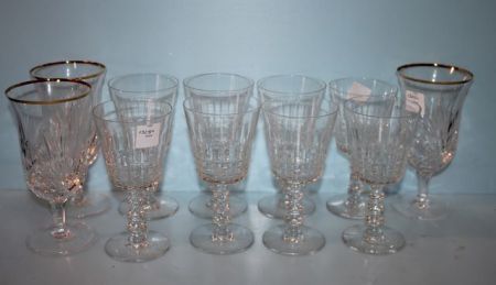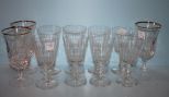 Eleven Crystal Glasses; three with gold rim; 6" h. Eleven Crystal Glasses; three with gold rim; 6" h.