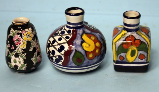 Three Small Porcelain Vases; 3" h., 2 1/2" dia. Three Small Porcelain Vases; 3" h., 2 1/2" dia.