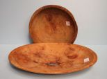 Two Wood Bowls/ 10 7/8" dia., 18" oval Two Wood Bowls/ 10 7/8" dia., 18" oval