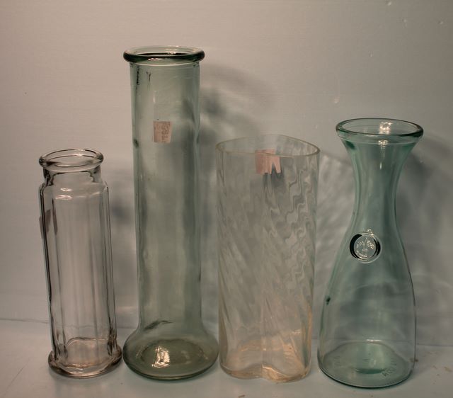 Four Glass Vases; 9 1/2" to 11" h. Four Glass Vases; 9 1/2" to 11" h.
