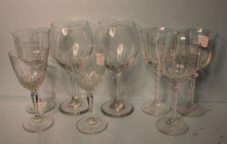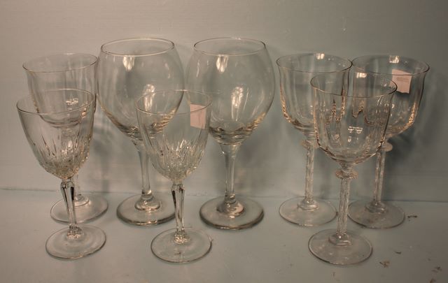 Eight Clear Glasses in Various Sizes; 6" h. Eight Clear Glasses in Various Sizes; 6" h.