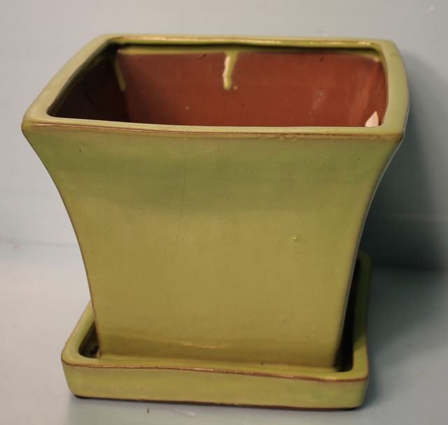 Lime Green Flower Pot with Underplate; 7 1/2" square Lime Green Flower Pot with Underplate; 7 1/2" square